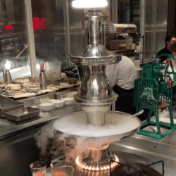 Tequila was dispensed from the dry ice fountain in the kitchen. We were amazed by how quietly and efficiently the kitchen staff worked. No frantic hustle and bustle, no noise or shouting, just determined execution of each station’s duties.