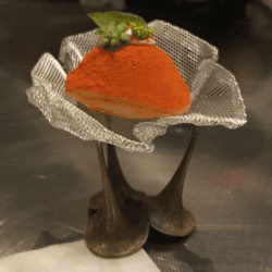 Japanese fruit and herb garnished with Japanese ginger and the texture of a rice krispie treat.