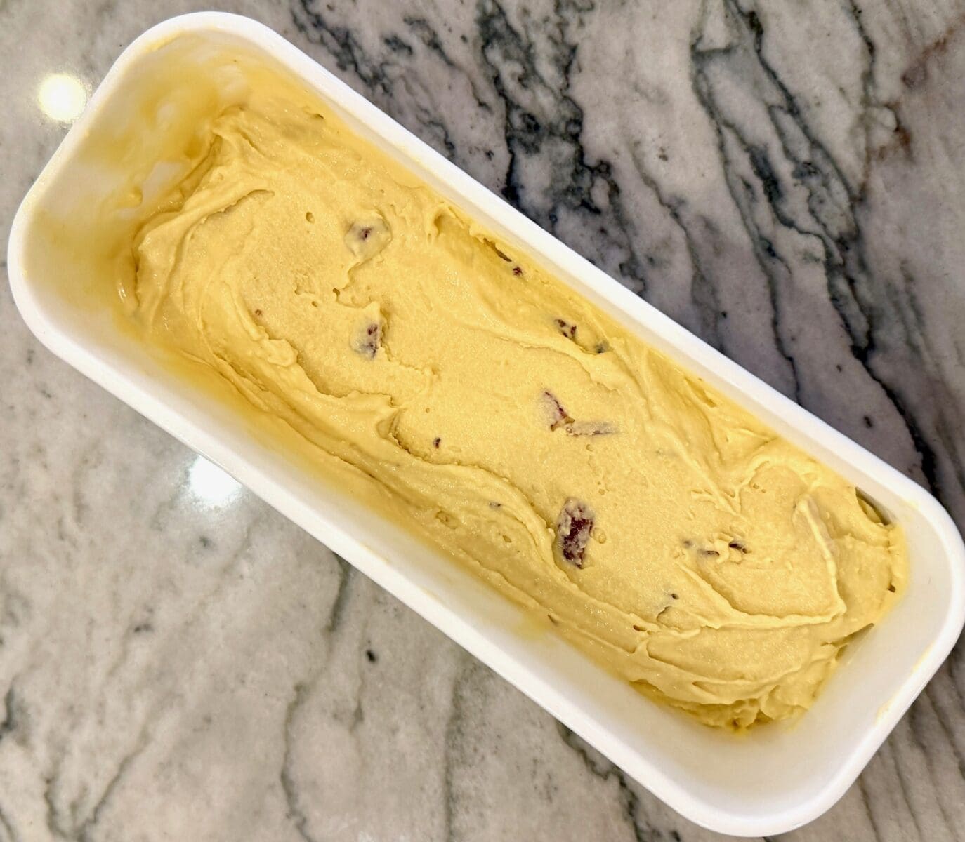 - When ready, transfer the ice cream to an air-tight container, and place in the freezer to finish