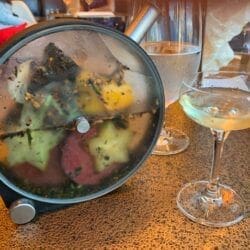 It wasn’t easy, but we tore ourselves from the view to concentrate on our menu for the evening. Eight courses of cocktails and small plates awaited and we were anxious to begin.