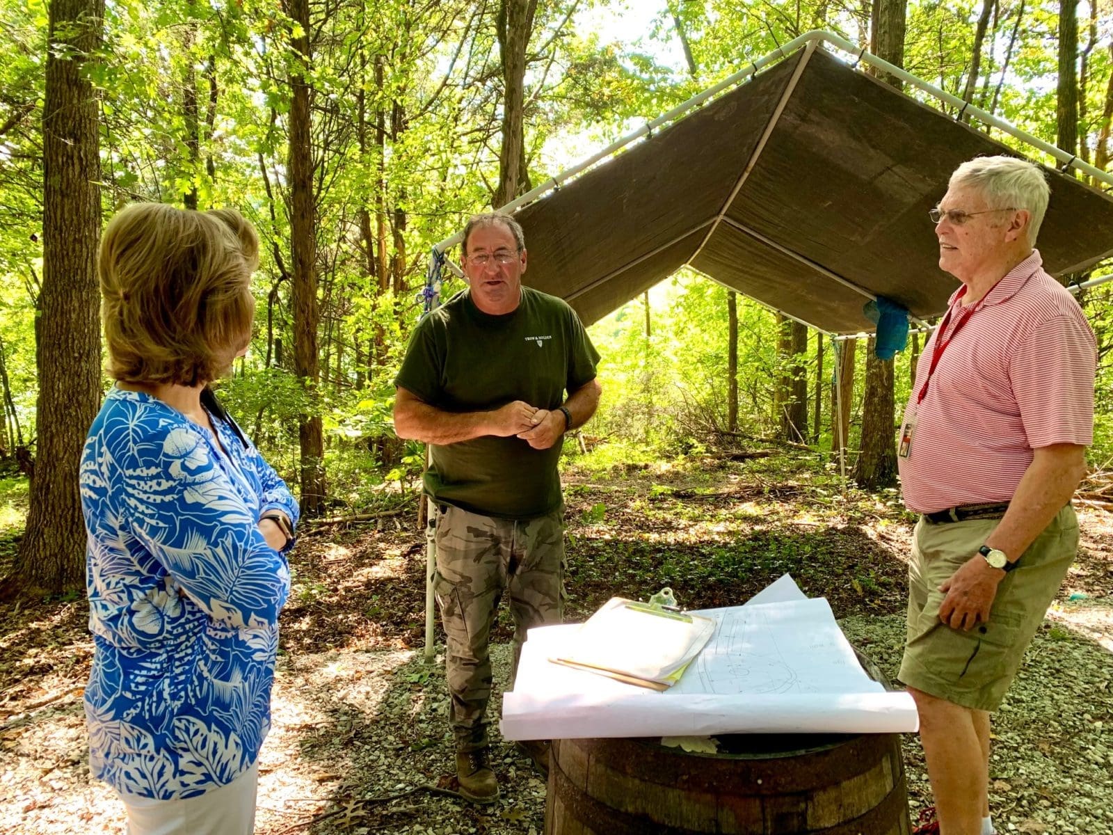 Pictured above is Neil Rippingale, project manager and master stone mason with Lynda Taylor and Bill Samuels, Jr.